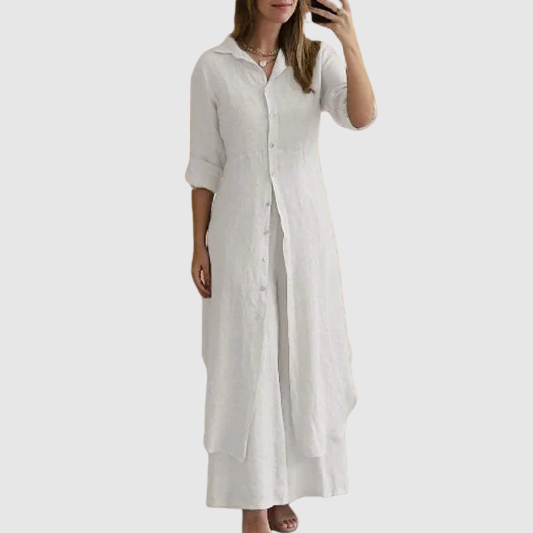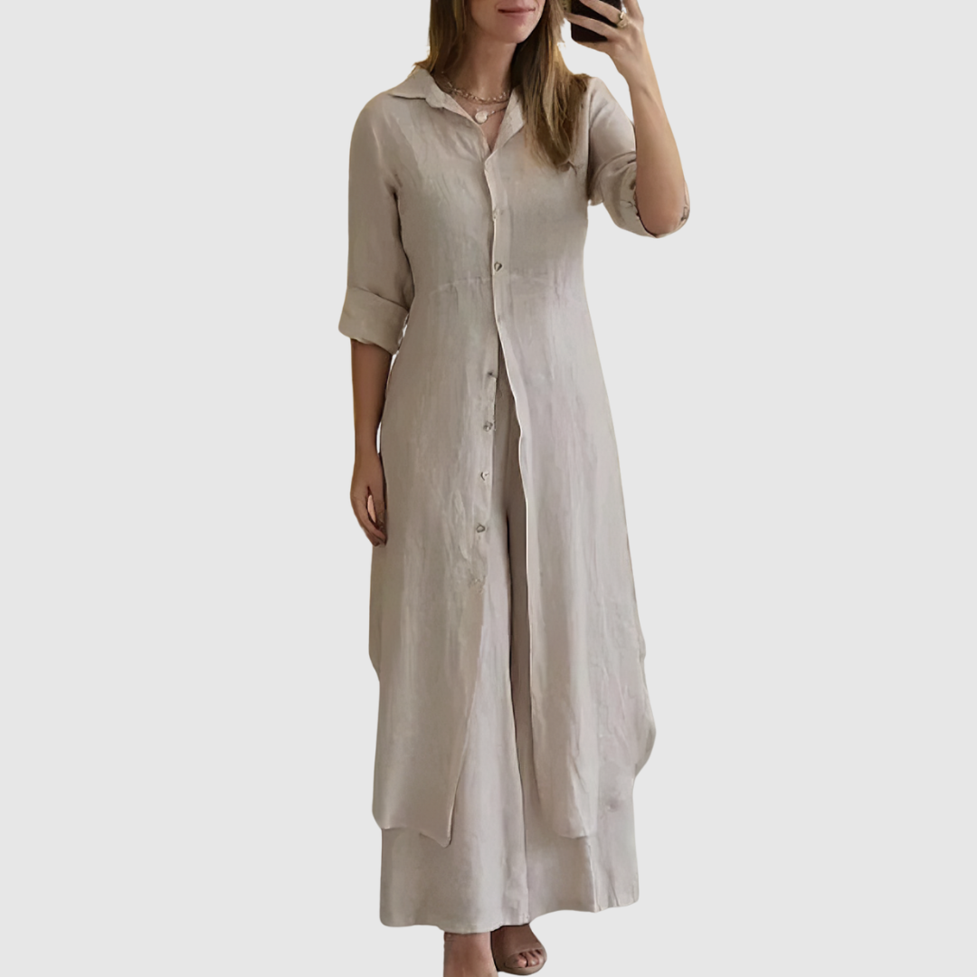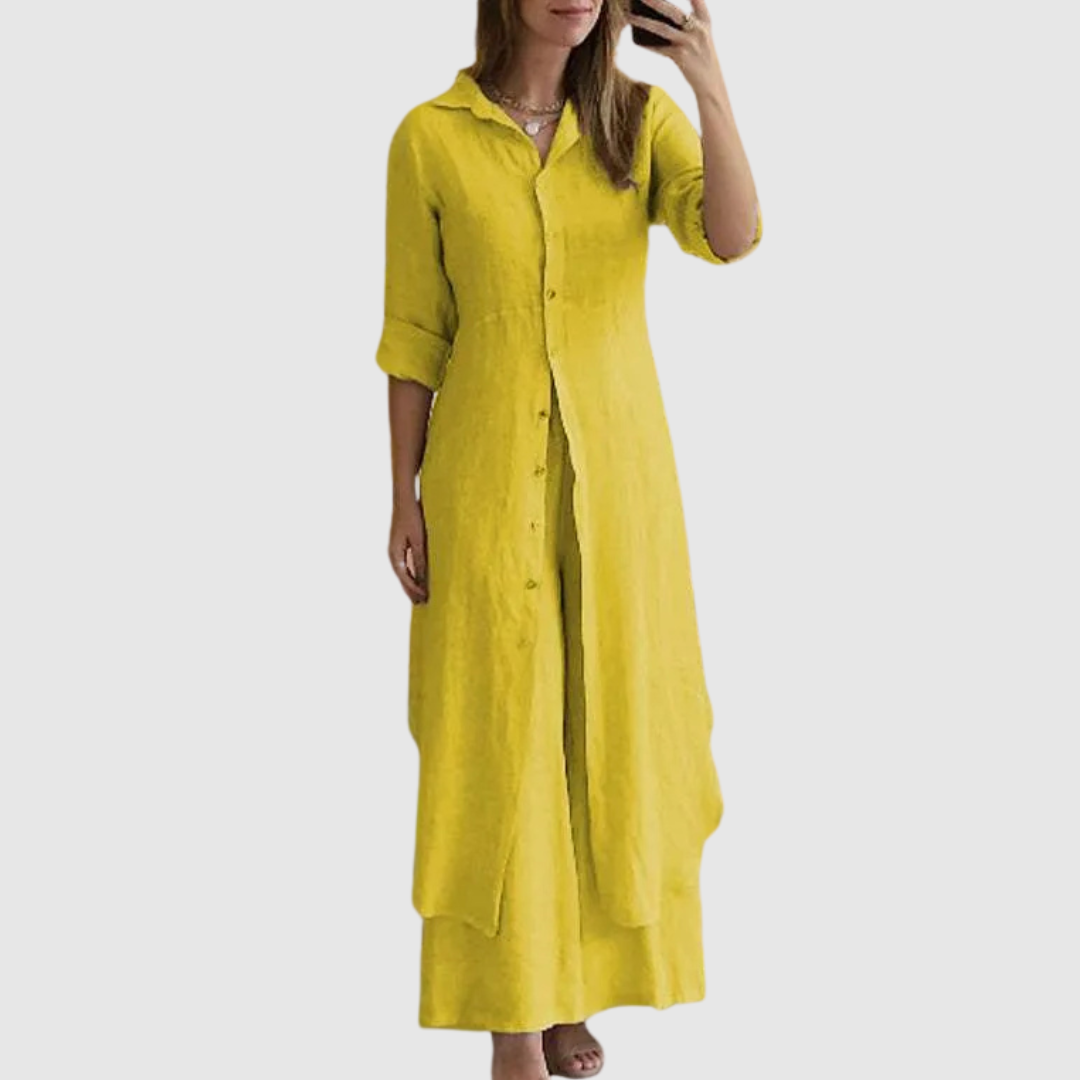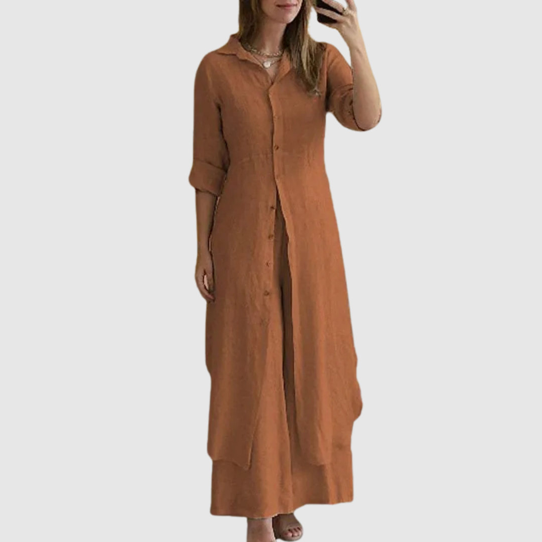 Scopri il nostro amatissimo Kerri™ - Set Due Pezzi in lino, perfetto per chi desidera un outfit che unisce eleganza e praticità. Ideale per eventi speciali o per aggiungere un tocco di classe al tuo look quotidiano, questo set è un vero best seller che non passerà inosservato.