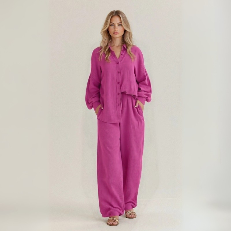 • Vestibilità e libertà di movimento: linee fluide e tagli studiati per accompagnare ogni gesto con leggerezza. Il lino si adatta con naturalezza alla forma del corpo, senza costringere.
